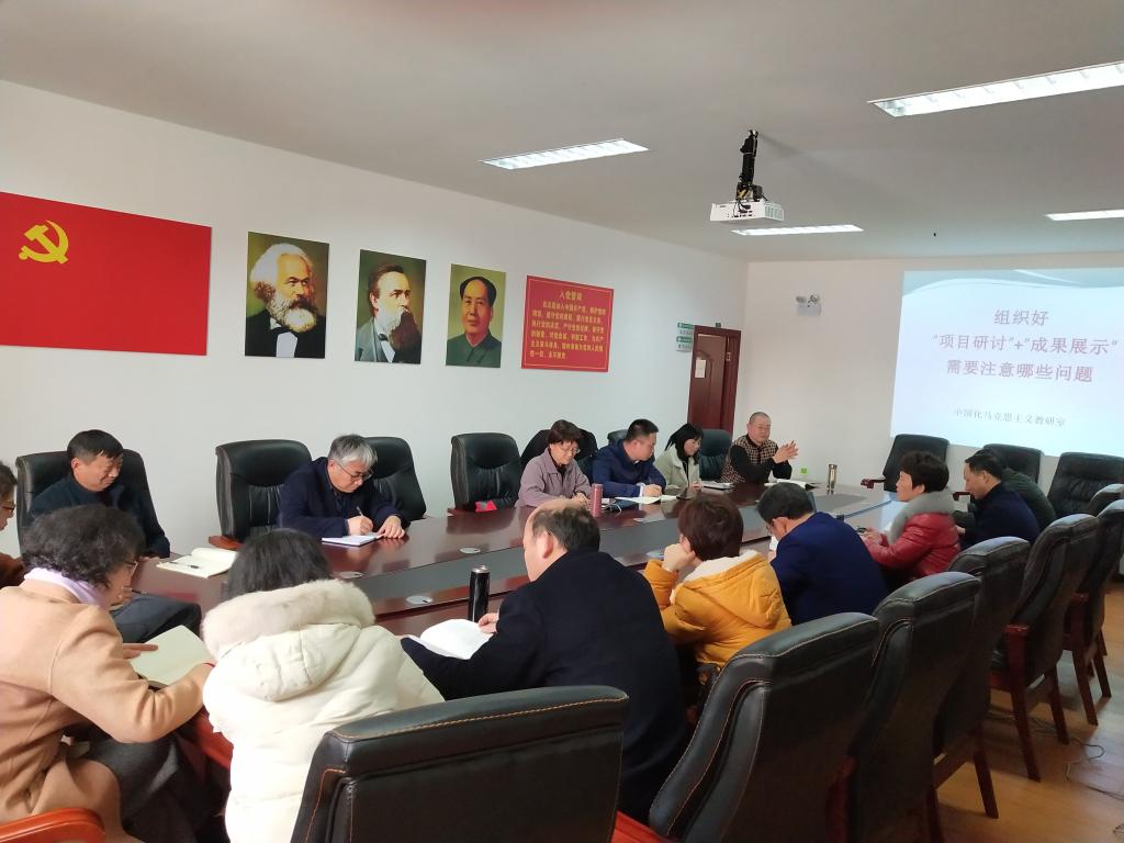 提出,通过建立“知识讲授”+“项目研讨”+“成果展示”为核心的教学模式,提升思政课教学效果。老师们围绕着“项目研讨”+“成果展示”在《概论》课程中的具体落实进行深入讨论,各抒己见。大家一致认为:教师首先要根据教材中的知识点来编写《案例库》和《故事库》,利用精心设计编写的“案例库”和“故事库”中的案例、故事来把教材中的知识点讲清楚、讲鲜活;在“项目研讨”模块,教师利用根据知识点所设计编写的《项目库》中的项目,组织学生选取项目进行分组研讨,把理论知识运用于实践,在实践中来诠释理论知识;“成果展示”中的成果形式提倡多样化、原生态,是对“项目研讨”的督促和成效的检验。