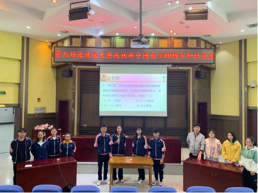 通讯员 柳奥)为庆祝新中国成立70周年,10月31日晚,以“壮丽70年·奋斗新时代”为主题的第九届党建党史暨庆祝新中国成立70周年知识竞赛决赛在行政楼一楼报告厅举行, a片
