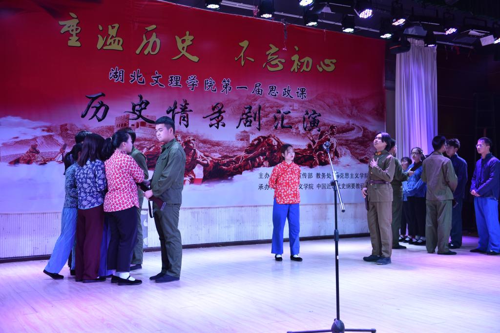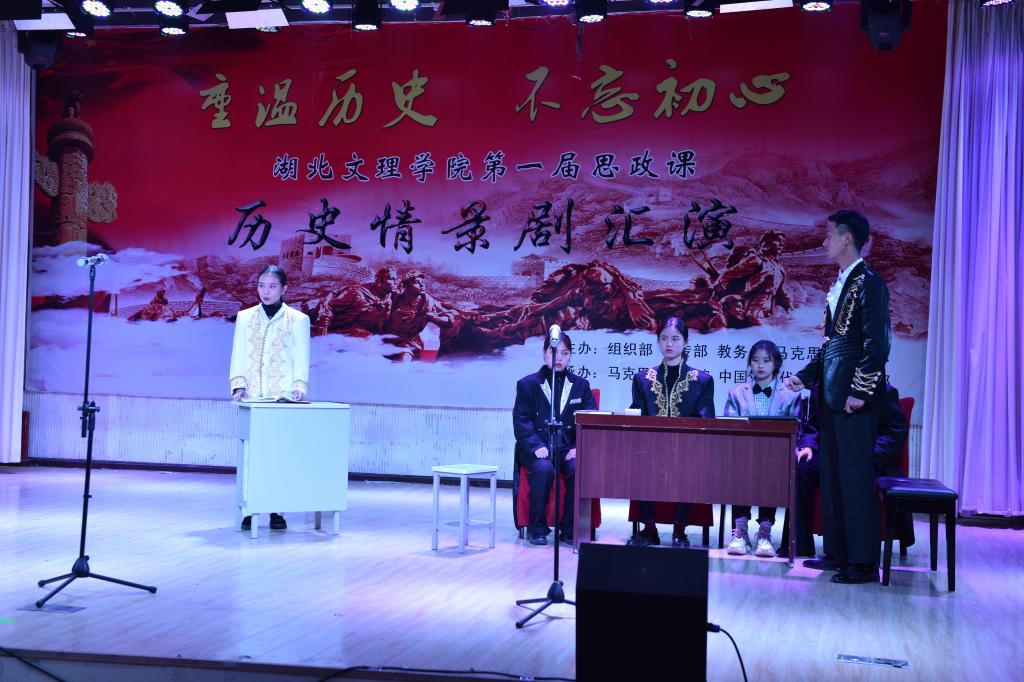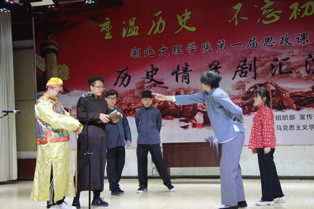 举办第一届思政课历史情景剧汇演,本次汇演以“重温历史、不忘初心”为主题,经过班级初选、学院复选,从最初的近400个历史情景剧作品中选出8个作品参加汇演,它们分别是:《虎门销烟》、《巴黎和会》、《五四运动》、《倔强的小红军》、《长征组歌》、《西安事变》、《刘胡兰》、《白毛女》等。舞台上,学生演员们用精彩的表演重现了中国近现代史上发生的历史事件,塑造了栩栩如生的历史人物形象,表现了民族危亡时刻中国人民坚强不屈的斗争精神,表达了新时代大学生不忘历史、奋发有为的坚定决心。最终,广编1811班《巴黎和会》剧组荣获一等奖,音乐学1811《白毛女》剧组、建筑学1811《长征组歌》剧组、广编1813《五四运动》剧组荣获二等奖,法学1812《西安事变》剧组、音乐学1811《倔强的小红军》剧组、物流1811《刘胡兰》剧组、英语1814《虎门销烟》剧组荣获三等奖。