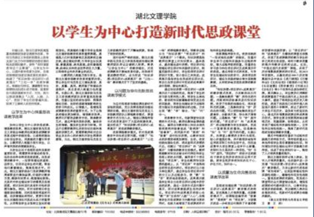 积极落实上级有关部门关于办好思想政治理论课的相关政策和要求,坚持“用好课堂教学这个主渠道”,以学生为中心,以提升教学效果为目标,在推进思想政治理论课改革的实践中,构建了“知识讲授+项目研讨+成果展示”“三位一体”的教学模式。根据时代特征,遵循青年学生思想特点和成长成才规律,探索新时代思政课教学方式、方法,努力让思政课真正“入耳、入脑、入心”,受到了学生们的普遍欢迎,取得了立德树人的良好效果。