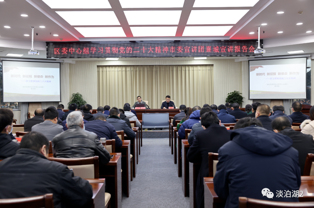 (教工通讯员 张庆)一元复始,万象更新。2023年1月28日,农历癸卯年上班第一天,襄阳市襄城区委中心组“新年第一课”集中深入学习贯彻党的二十大精神。襄城区“四大家”领导,法检“两长”,各乡镇、街道党(工)委书记,区直各单位主要负责同志参加学习。襄城区委书记周俊明主持报告会并讲话。襄城区“新年第一课”邀请到襄阳市委宣讲团成员、 a片