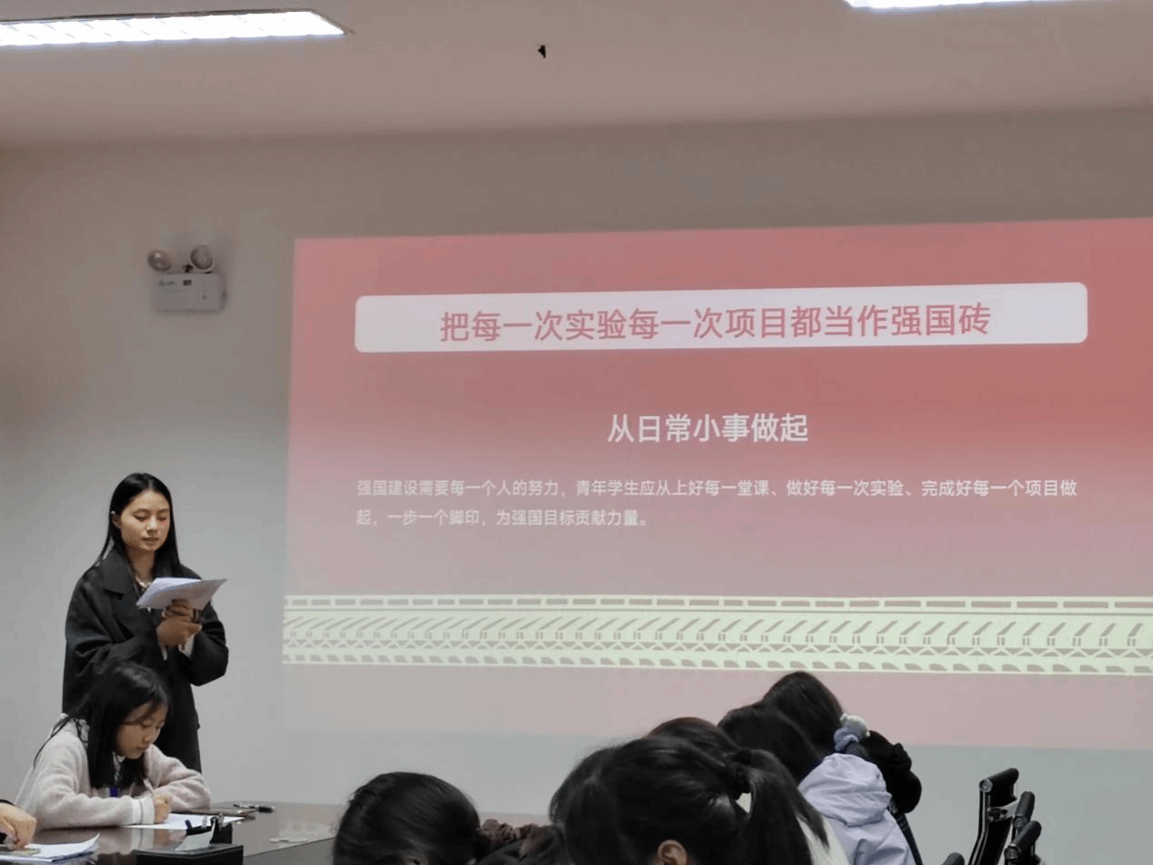 九位学生主讲人围绕《习近平谈治国理政》第五卷专题五“一体推进教育科技人才事业发展”的研读心得进行展示汇报。