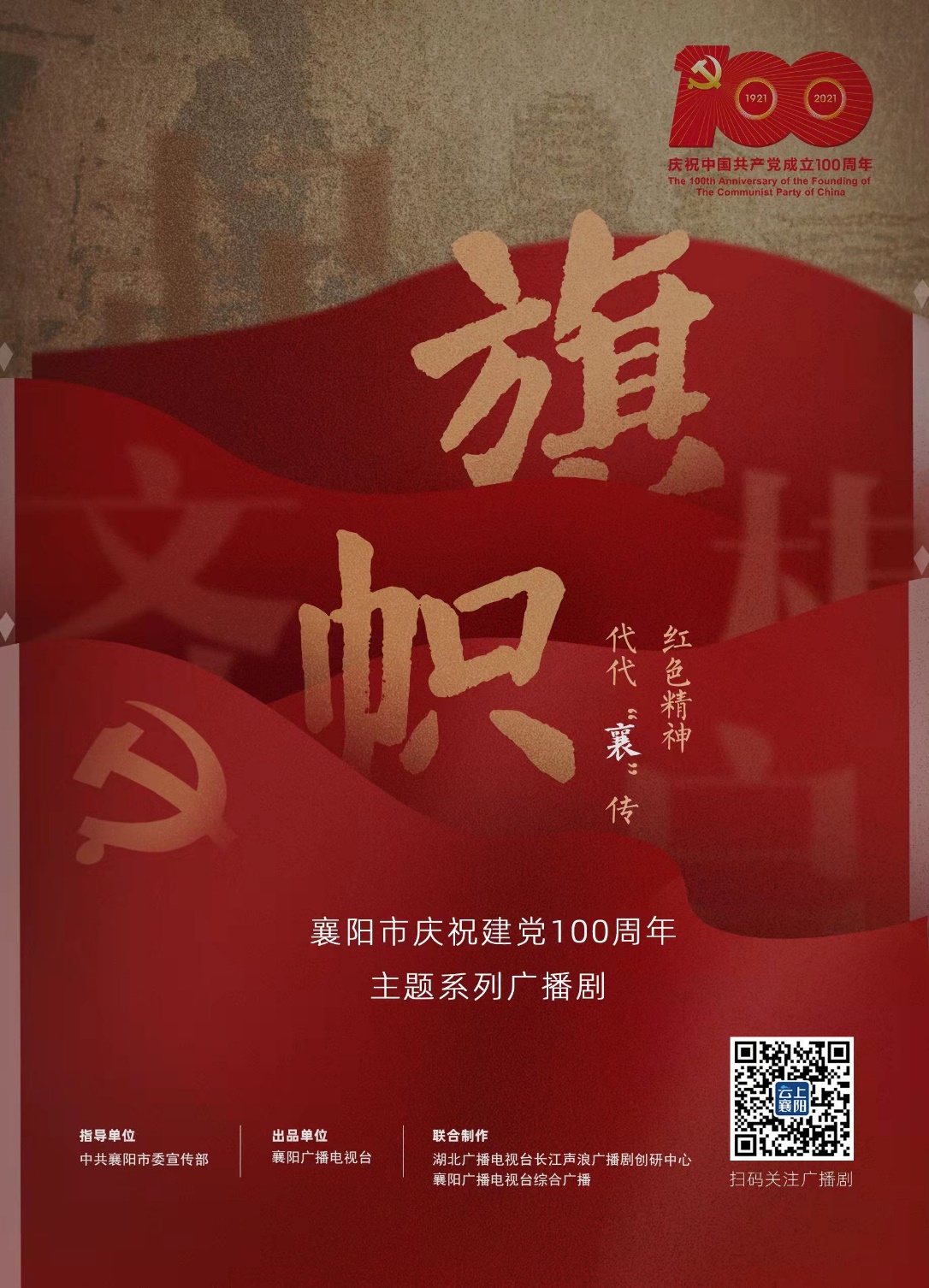 “红色精神 代代‘襄’传”广播剧《旗帜》聚焦中国共产党成立100周年以来,襄阳历史上和近年来涌现的先进党员典型和真实事例,通过艺术创作,真实反映中国共产党领导襄阳人民进行革命、建设、改革的生动实践,深情讴歌中国共产党践行初心使命,与人民心连心、同呼吸、共命运,为人民谋幸福、为民族谋复兴的百年奋斗历程。