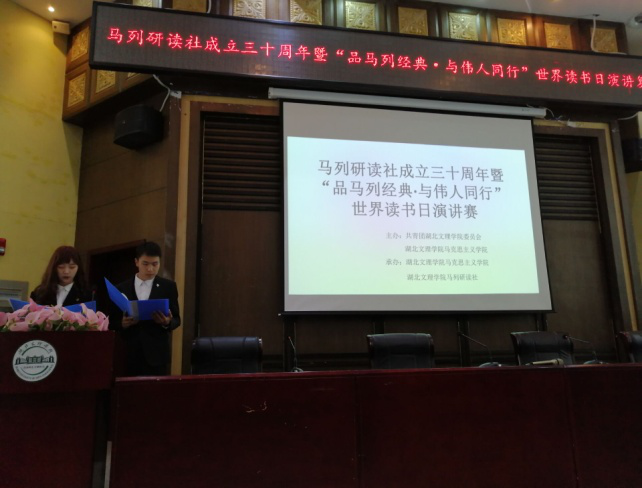 指导下,经过海选、初选后,“马列研读社成立三十周年暨‘品马列经典·与伟人同行’世界读书日”演讲比赛(复赛)于4月9日晚在行政楼一楼报告厅举行。