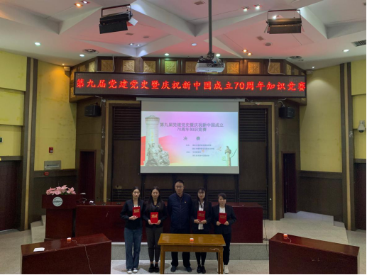 通讯员 柳奥)为庆祝新中国成立70周年,10月31日晚,以“壮丽70年·奋斗新时代”为主题的第九届党建党史暨庆祝新中国成立70周年知识竞赛决赛在行政楼一楼报告厅举行, a片