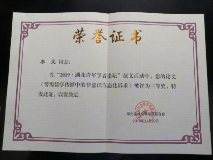 (李健、李元获奖证书)