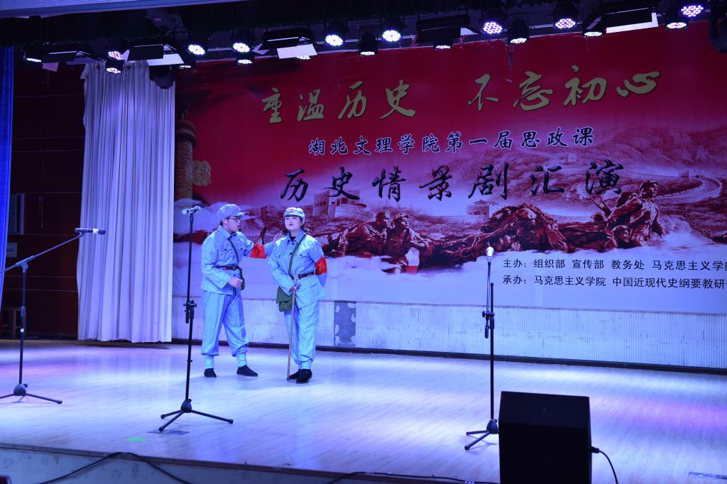 举办第一届思政课历史情景剧汇演,本次汇演以“重温历史、不忘初心”为主题,经过班级初选、学院复选,从最初的近400个历史情景剧作品中选出8个作品参加汇演,它们分别是:《虎门销烟》、《巴黎和会》、《五四运动》、《倔强的小红军》、《长征组歌》、《西安事变》、《刘胡兰》、《白毛女》等。舞台上,学生演员们用精彩的表演重现了中国近现代史上发生的历史事件,塑造了栩栩如生的历史人物形象,表现了民族危亡时刻中国人民坚强不屈的斗争精神,表达了新时代大学生不忘历史、奋发有为的坚定决心。最终,广编1811班《巴黎和会》剧组荣获一等奖,音乐学1811《白毛女》剧组、建筑学1811《长征组歌》剧组、广编1813《五四运动》剧组荣获二等奖,法学1812《西安事变》剧组、音乐学1811《倔强的小红军》剧组、物流1811《刘胡兰》剧组、英语1814《虎门销烟》剧组荣获三等奖。