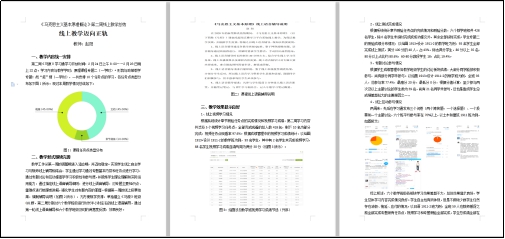 在每周五系统关闭后,我会通过线上学习平台查看学生各部分内容的学习与完成情况,对本周教学情况做基本总结或是汇报,其中涉及教学内容探讨、教学案例分析、教学方法改进、教学效果评估等方面,以便于教师之间资源共享、相互学习和借鉴,提高教学成效。其中教学效果评估主要依据以下两大方面:一是专题任务点的完成情况,包括专题教学内容概述、线上学习课件、线上学习视频、参考资料、专题测验;二是学生综合成绩情况,包括视频学习、章节测验、专题讨论、学习互动。根据前四周教学平台的数据统计以及学生与教师在线互动情况,总体教学效果初显不错。当然,在学生克服困难努力学着适应线上自主学习,积极参与线上互动与辅导的同时,也可以感受到同学们对校园和课堂的向往。“从来没有什么岁月静好,只是有人替你负重前行”。如今,我们共同努力、共克时艰不仅为自己,也为致敬所有守护生命安全的战疫英雄,致敬伟大祖国。