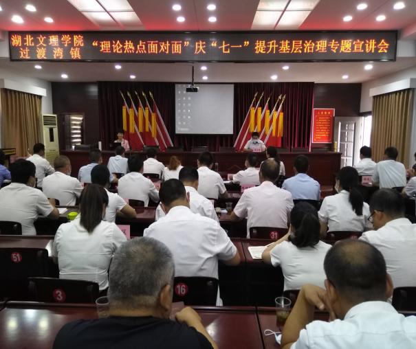 理论热点面对面宣讲团队赴“理论热点面对面”示范点——保康县过渡湾镇开展理论宣讲活动。周淑芳博士作了题为《贯彻落实全国两会精神,解读民法典,助力乡村基层治理》的宣讲报告。过渡湾镇党委班子成员、全体政府行政干部、村(社区)支部书记、镇直单位支部书记和镇直单位负责人、2020年党员纳新对象参加了宣讲活动。宣讲活动由过渡湾镇党委书记褚应康同志主持。