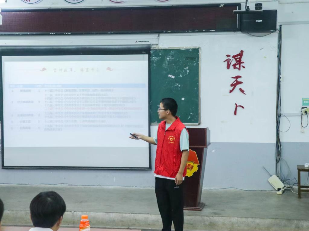 “湖小文”宣讲团成员杨烁在回顾了党的历届三中全会的光辉历程后,详细介绍了党的二十届三中全会的会议主题、会议议程以及会议通过的重要决策等。在宣讲的核心部分,杨烁全面准确地解读了《决定》中提出的进一步全面深化改革的一系列重大举措,深入剖析这些举措的重要性和紧迫性,让青年大学生对党的最新理论成果有了更加深入的理解。
