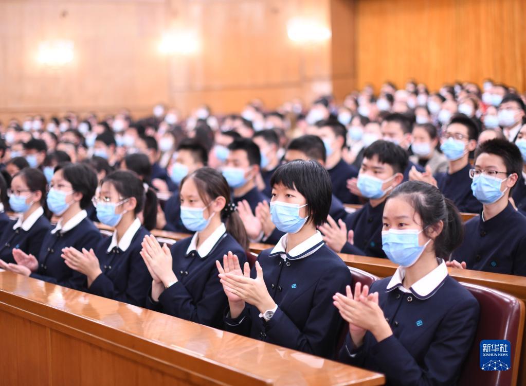 人民大会堂大礼堂气氛庄重热烈。主席台上方悬挂着“纪念辛亥革命110周年大会”会标,后幕正中是孙中山先生画像,10面红旗分列两侧,上面悬挂的“1911”“2021”字标格外醒目。