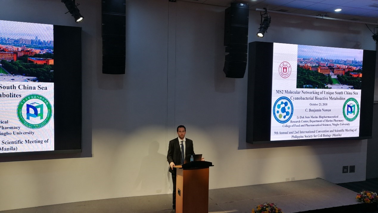 食品与药学a片教师斯拉瓦·爱泼斯坦、何山、C. Benjamin Naman (Ben)、张为艳受邀参会,其中何山和Ben受邀作了大会报告(Plenary Speaker)。何山的报告《International Innovation in Marine Biomedicine》介绍了我院近年在国家111引智基地和李达三叶耀珍伉俪李本俊海洋生物医药发展基金的支持下,通过外专引智与国际合作,在海洋药物研发、科学潜水与海洋生物资源挖掘、海洋健康产品开发方面的研究进展。Ben的报告《MS2 Molecular Networking of Unique South China Sea Cyanobacterial Bioactive Metabolites》介绍了基于分子网络技术从中国南海蓝藻中发现新天然产物及其药用活性的工作进展。PSCB学会主席Mary Beth B. Maningas教授为何山和Ben颁发了大会报告专家荣誉证书。他们的研究工作得到了国家重点研发计划项目(2018YFC0310901)、国家自然学基金面上项目(41776168)和外国青年学者国际合作项目(81850410553)的支持。