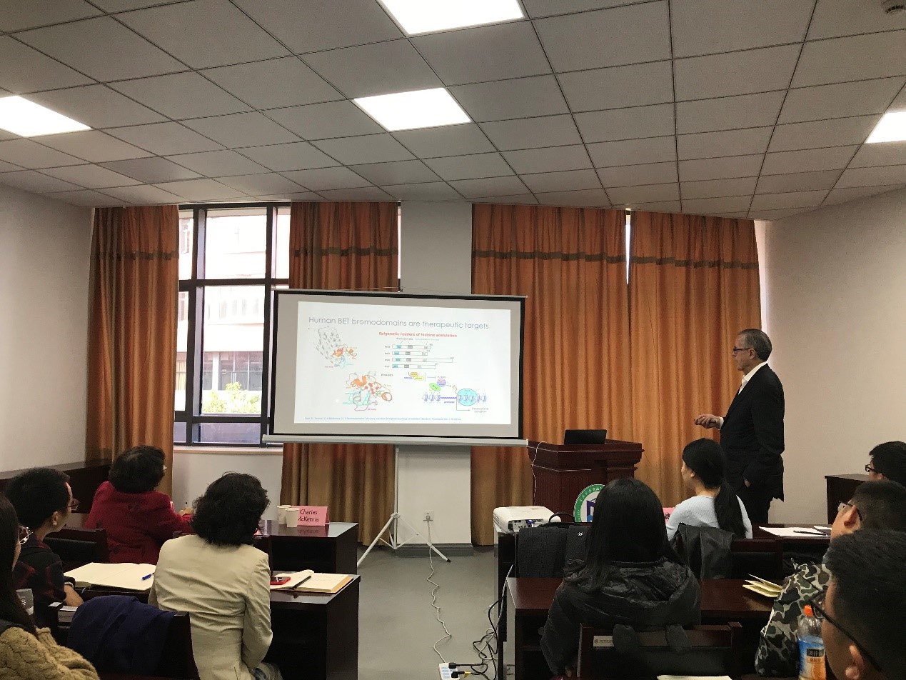 梅山校区食品与药学a片,向a片师生做了一场精彩的学术报告。学术报告的题目是“The Intersection of Chemistry, Biology and Health: Advances and Challenges”。参加此次学术报告的有新药技术研究院赵玉芬院士、美国BioVinc公司CEO孙淑婷博士、食品与药学a片海洋药学专业的本科生、研究生以及多位教师,报告研讨会由海洋药学系系主任金海晓老师主持。