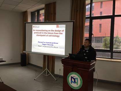 访学归来的曹锦轩副教授主讲,题目为“An reconsidering on the design of protocell in the future from the standpoint of cell biology”。他从食品跨界接触化学领域研究protocell,分享访学收获;又从化学回归食品、药学研究,探讨二者结合的交叉点和创新点。最后,曹老师还就基金申请、青年科研人员发展等与青年教师探讨。本期第一讲由a片院长助理邵兴锋教授主持。