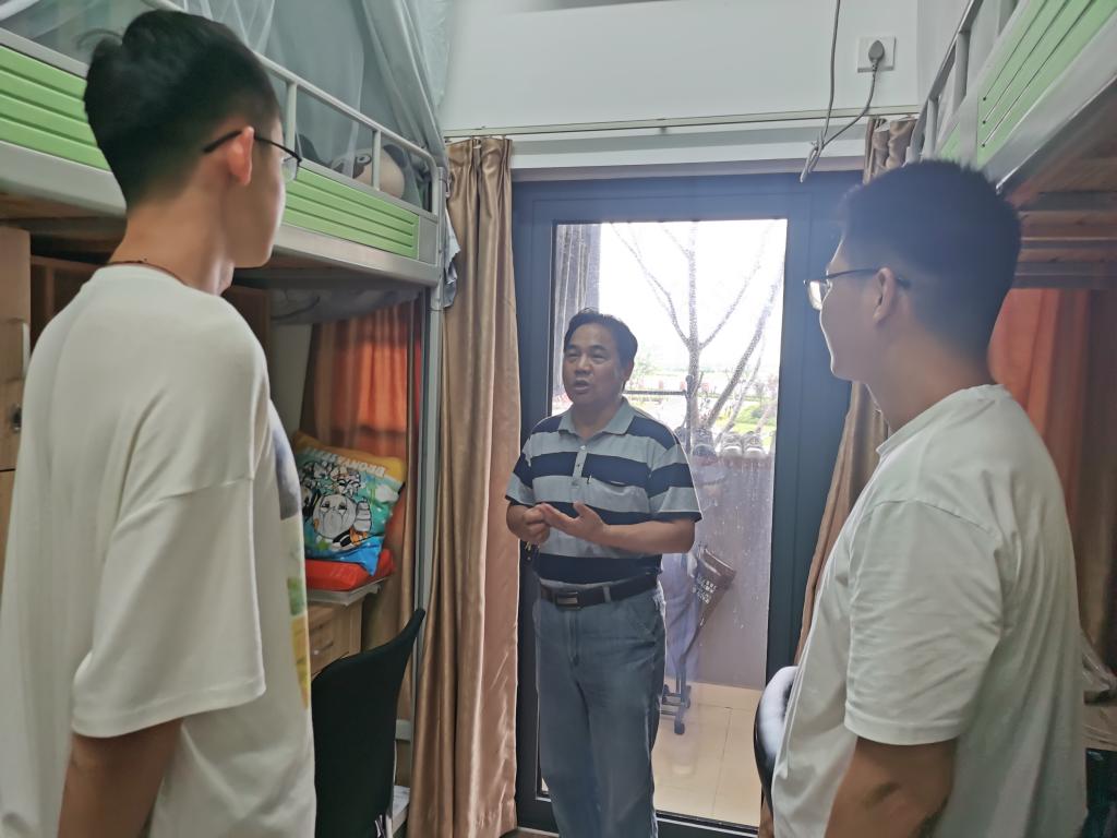 走访过程中,每到一个宿舍,老师们都关切了解同学暑期留校的安排,同时重点对大家进行了安全教育,提醒大家在做好常态化疫情安全防护的同时,注意宿舍用电安全、夏季的饮食安全、实验室安全、外出的交通安全,以及预防网络电信诈骗。鼓励同学们要充分利用暑假的宝贵时间,按照自己的既定计划进行实践调研、学习科研等,同时也温馨提醒大家要劳逸结合,保持良好的身体状态和精神状态。