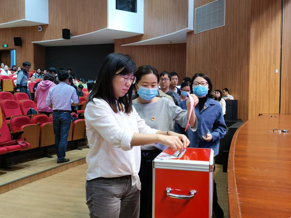 第四次代表大会代表选举办法(草案)》,在场党员举手表态,全票通过选举办法。大会审议通过监票人、计票人建议名单、宣读了a片按照程序推选产生的10位代表候选人名单并介绍了候选人基本情况,最后以无记名投票方式选举出食品与药学a片出席中共a片