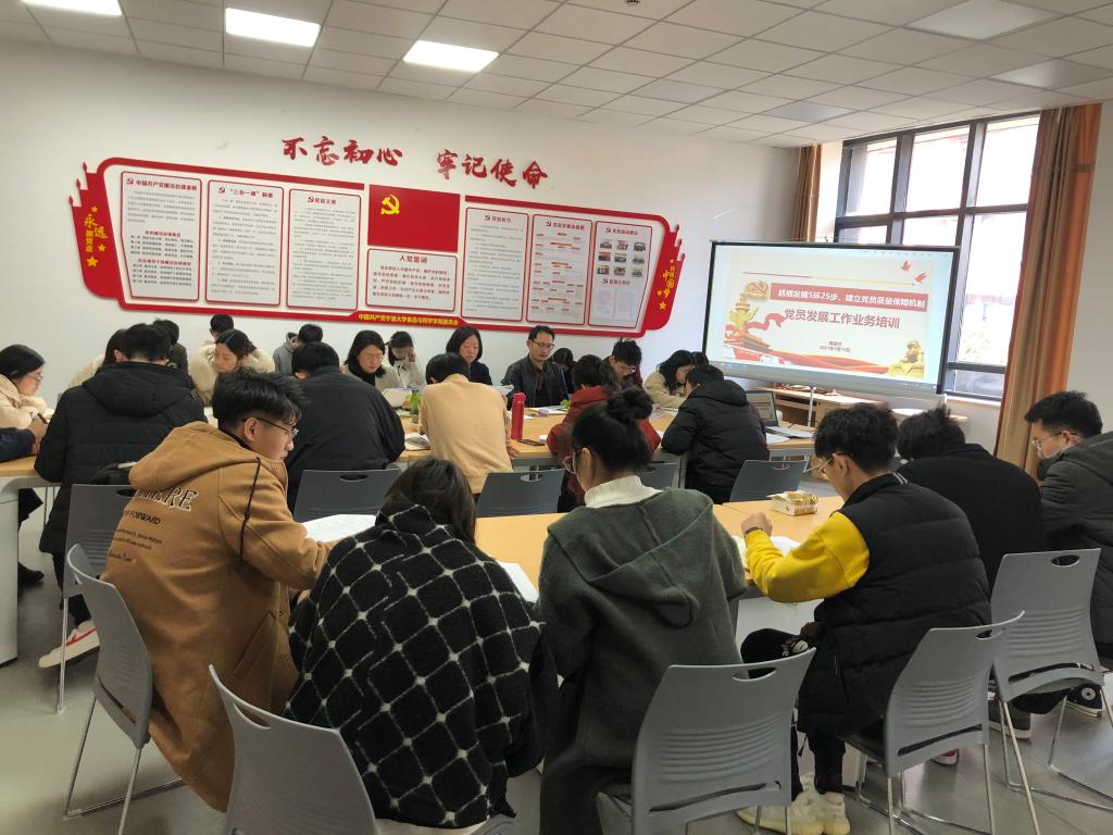 会上,陶娟首先传达了学校二级党组织书记会议精神,并部署了学校《关于开展基层党组织“百年行动”做好2021年上半年基层党建工作的通知》,要求各党支部根据通知要求保质保量的完成,同时对新学期抓好党建工作提出了五点要求:一是理论学习要提质;二是思想工作要到位;三是党建业务要融合;四是组织建设要规范;五是作风优化要务实。副书记谢果凰从党史学习教育、微型党课、党日活动、党员社会实践、党员发展、党建业务融合等方面做了具体工作布置,要求各党支部结合理论学习,积极参与到“‘时耀’奋进新征程,百年党史接力跑”的大型活动当中。随后,由专职组织员对学校有关基层党建工作考核文件进行了解读;党建辅导员以“抓细发展5环25步,建立党员质量保障机制”为题,就发展党员工作的5个阶段对全体党务工作人员进行了全面系统的培训,并针对主要材料的书写要求和注意事项、重要时间节点以及发展党员工作中常见的问题等进行了详细讲解。