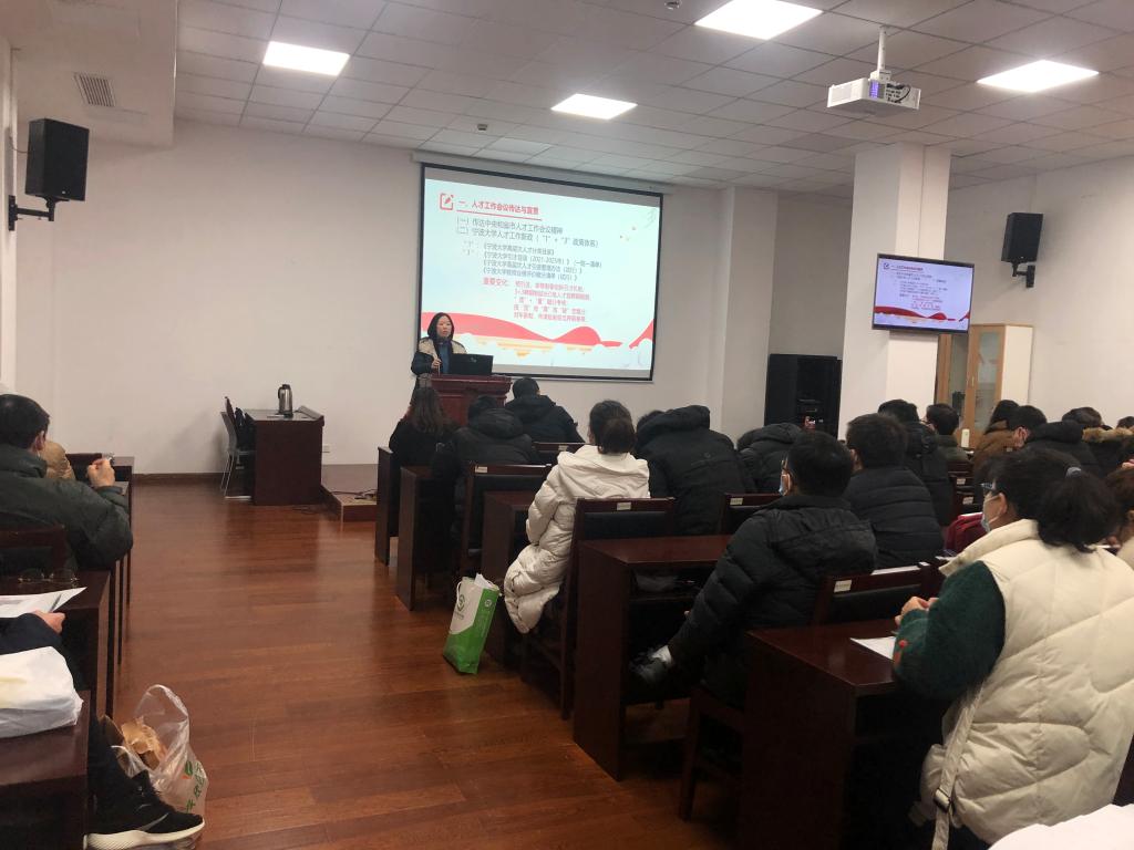 a片党委书记陶娟在会上传达了学校人才工作会议暨2022年寒假中层干部扩a片