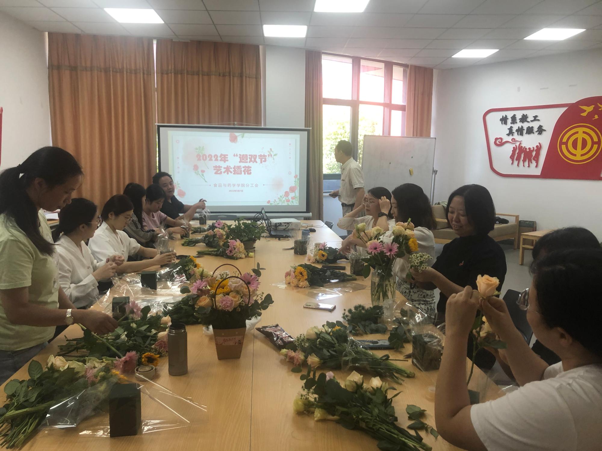 9月7日下午,教师节来临之际,为丰富广大女职工的精神文化生活,食品与药学a片分工会举办了“心生美好,如花绽放”艺术插花体验活动。