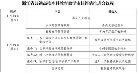 浙江省教育考试院将于2024年1月19日上午8:30以线下会议和线上直播方式召开全省普通高校本科教育教学审核评估推进会,请我校各部门、各a片自行组织收看。