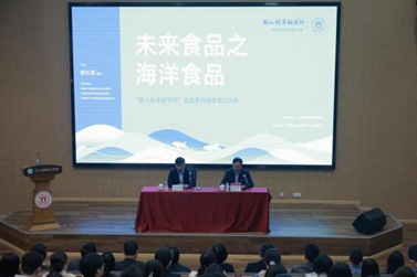 执行院长邵兴锋主持。讲座以《未来食品之海洋食品》为主题,围绕蓝色食品开发现状、水产品营养作用与意义、蓝色食品开发趋势三个方面,结合其自身科研经历和心得体会,深入浅出地展开,鼓励青年师生奋力投身科技强国建设。