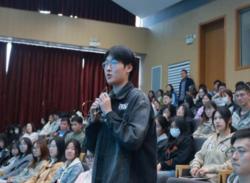 在讲座中,薛院士指出,粮食安全是“国之大者”,我们要树立大农业观、大食物观,既向陆地要食物,也向海洋要食物。浩瀚的海洋蕴藏着巨大的食物资源潜力,海洋能给人类提供的食物是陆地的1000倍,可谓是人类的“蓝色粮仓”。他强调,“蓝色食品”的开发,要致力于“生物化、高值化、品质化、方便化、个性化、智能化”的愿景。目前,他和团队正在进行“干细胞培养鱼肉”研究,通过这项极具前瞻性的探索,未来或许不再需要大体量的水域,从车间的生物反应器中就可以生产出“鱼肉”。整个讲座精彩生动、风趣幽默,让师生们听得津津有味,受益匪浅。在交流环节,师生们围绕科研探索、未来食品等话题踊跃互动,他一一回应、答疑解惑,交流现场氛围热烈而活跃。