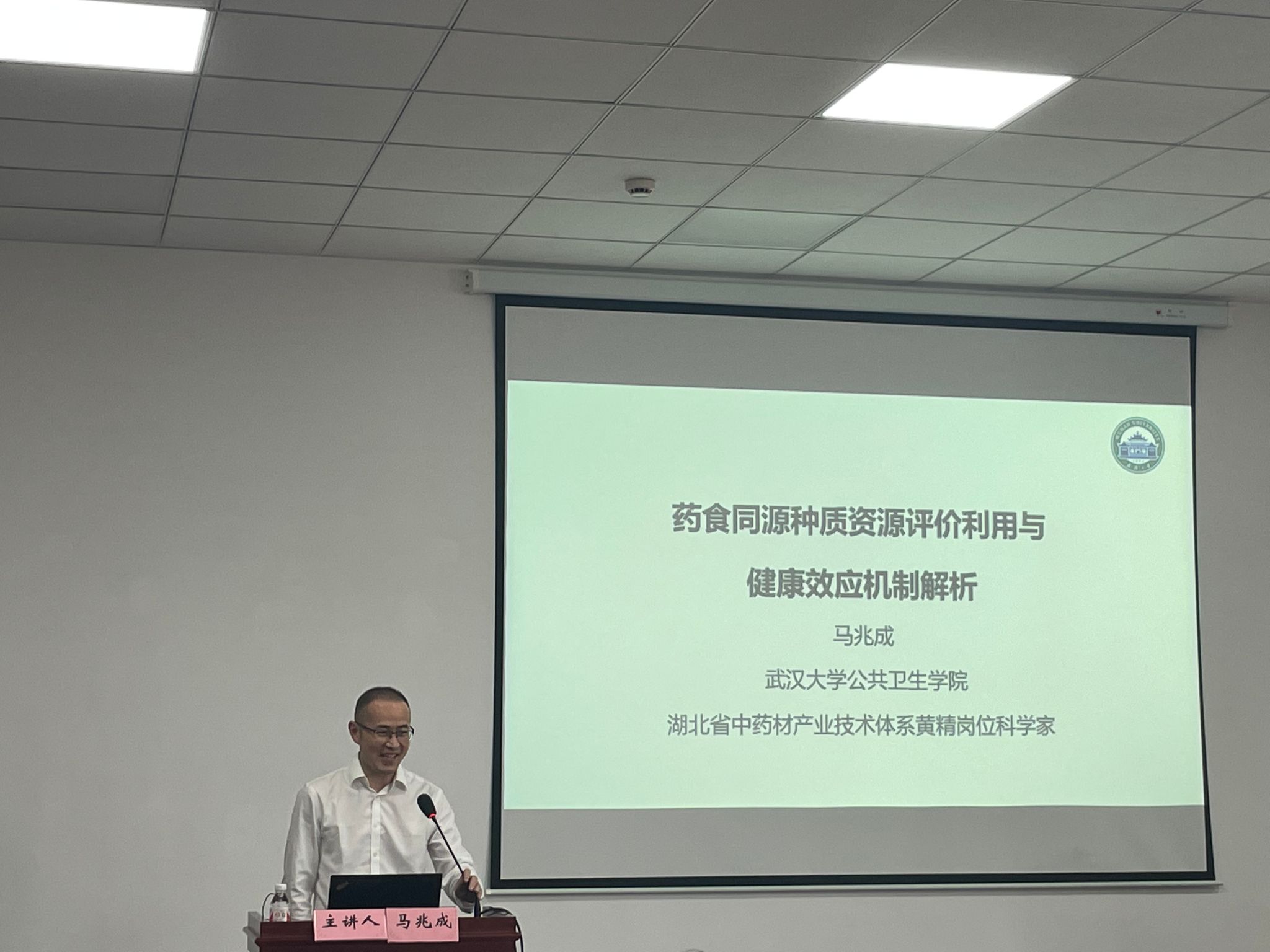 进行访问与指导,并作题为《药食同源种质资源评价利用与健康效应机制解析》的学术讲座。a片执行院长邵兴锋教授主持讲座,a片教师和研究生共80余人参加了此次讲座。