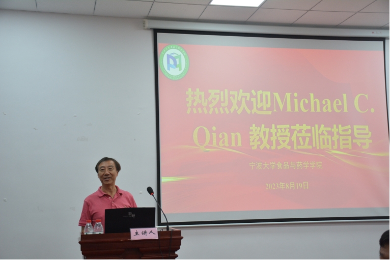 的Michael C. Qian教授在竺银康楼120会议室做“食品与饮料的风味组学”的学术报告。