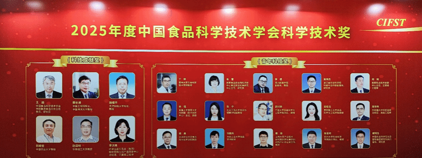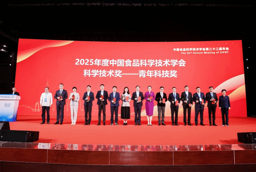 中国食品科学技术学会第二十二届年会于2025年10月29-31日在广州举行。大会举行了“2025年度中国食品科学技术学会科学技术奖(科技成就奖、青年科技奖)”颁奖仪式,王喆等6人获得科技成就奖、丁郁等15人获得青年科技奖。