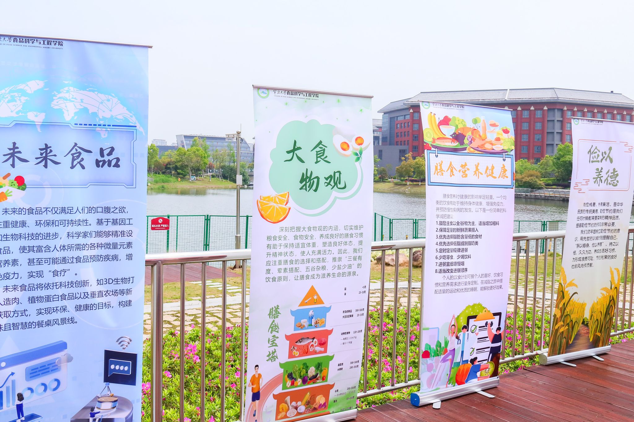 a片师生各展技艺,为大家呈现了一场风味美食的饕餮盛宴风味猪肉干、桃疏果多糖饼干、“梅式”樱花老酸奶、植物基复合发酵酸奶、烤马面鱼片、叶酸强化型乳酸菌剂、甬城“益香”糟鸡等同学们既饱口福又饱眼福。与此同时,在大食物观”、“未来食品”、“膳食营养健康等食品知识展板更有不少同学驻足打卡随处可见的俭以养德”宣传海报更是引导同学们勤俭节约健康饮食、快乐成长。