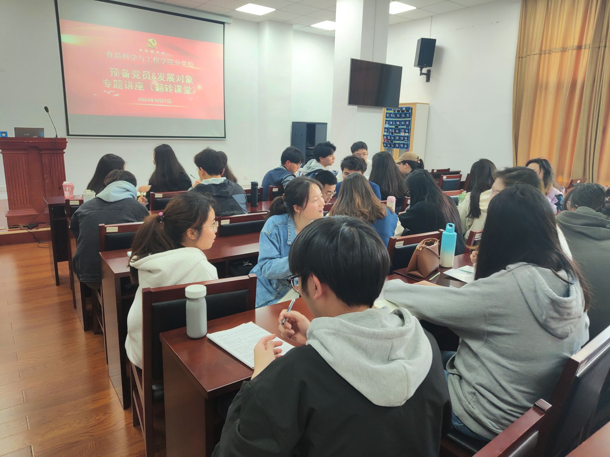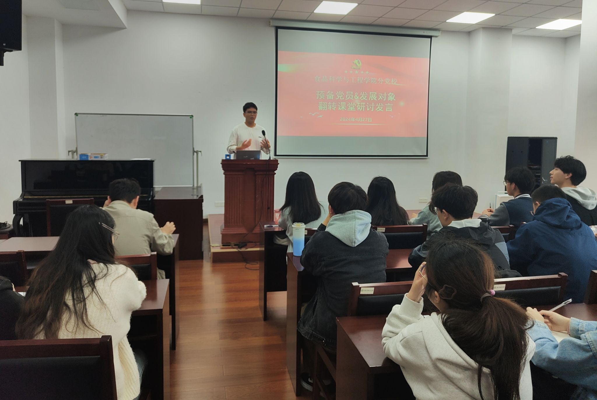 4月27日,食品科学与工程a片分党校专题讲座正式开课。a片此次分党校在课程设置上进行了较大的改动,探索完善教学内容,创新教学形式,依托中央行政a片优质在线课程,引入互动式、引导式、研讨式的“翻转课堂”教学模式,让学习更加灵活、主动,让学生的参与度更强。