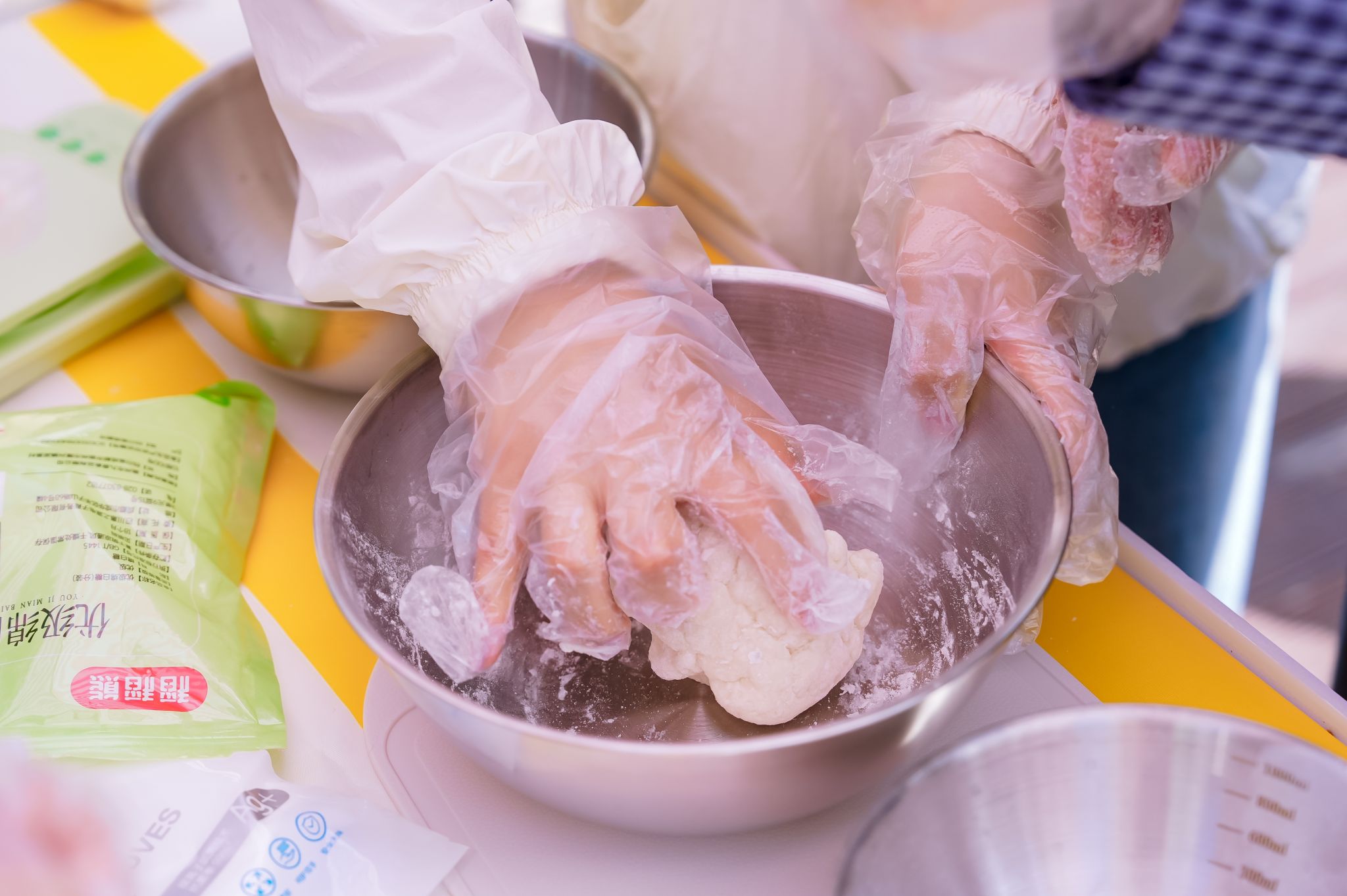 当非遗美食的香气在指尖流转,“食”光物语非遗美食DIY区以一场沉浸式手作盛宴,将活动氛围推向最高潮。展区聚焦传统酿造、手工点心等技艺,通过图文并茂的展板和实物陈列,系统梳理传统食品的历史渊源与制作技艺,让师生在品尝非遗美食的同时,感受中华饮食文化的博大精深。在专业教师和研究生团队的指导下,参与者亲手制作传统中式糕点桔红糕与养生花茶。从揉制糯米粉团到调配花茶配方,每个步骤都渗透着传统饮食的智慧:桔红糕的制作还原了古法手工技艺,强调“慢工出细活”的匠人精神;养生花茶的搭配则结合现代营养学,让参与者在个性化创作中体会“药食同源”的养生理念。“原来传统美食里藏着这么多科学门道,自己动手更觉得每一口都充满文化韵味。”一位参与者感慨道。