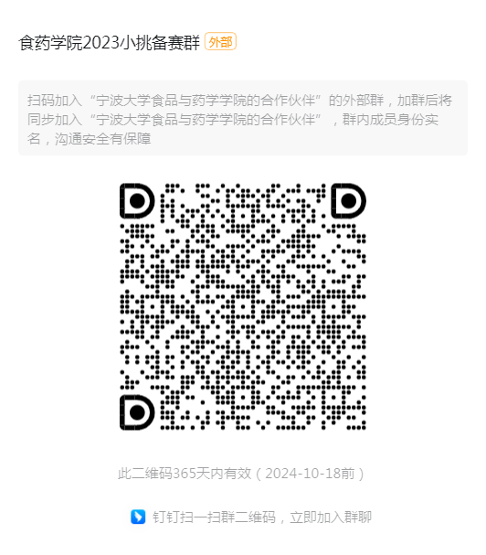 (三)即日起至10月30日为a片项目排摸阶段,请预申报本次竞赛的师生加入“食药a片2023小挑备赛群”(钉钉群),相关通知问题等将在群内发布。
