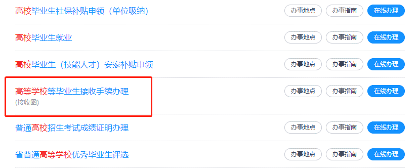 第一步:实名注册、登录浙江政务服务网a片网站www.zjzwfw.gov.cn,搜索高等学校等毕业生接收手续办理,点在线办理