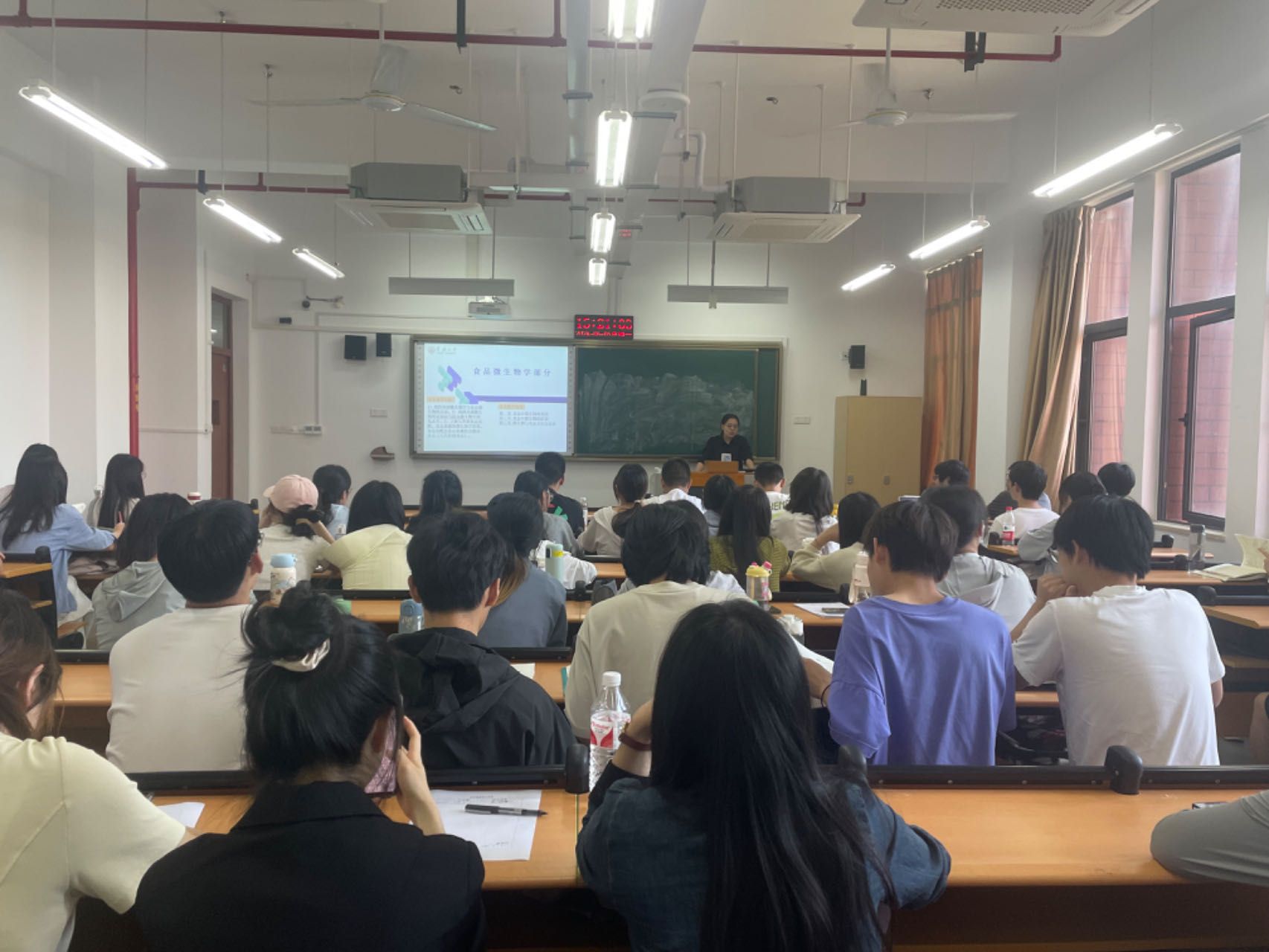 本次课程主要讲授食品中微生物的利用,刘老师通过举例、视频播放、提问等多种教学手段向学生讲解微生物与乳制品、微生物与发酵调味品的关系,并以奶酪的加工工艺激励学生在a片