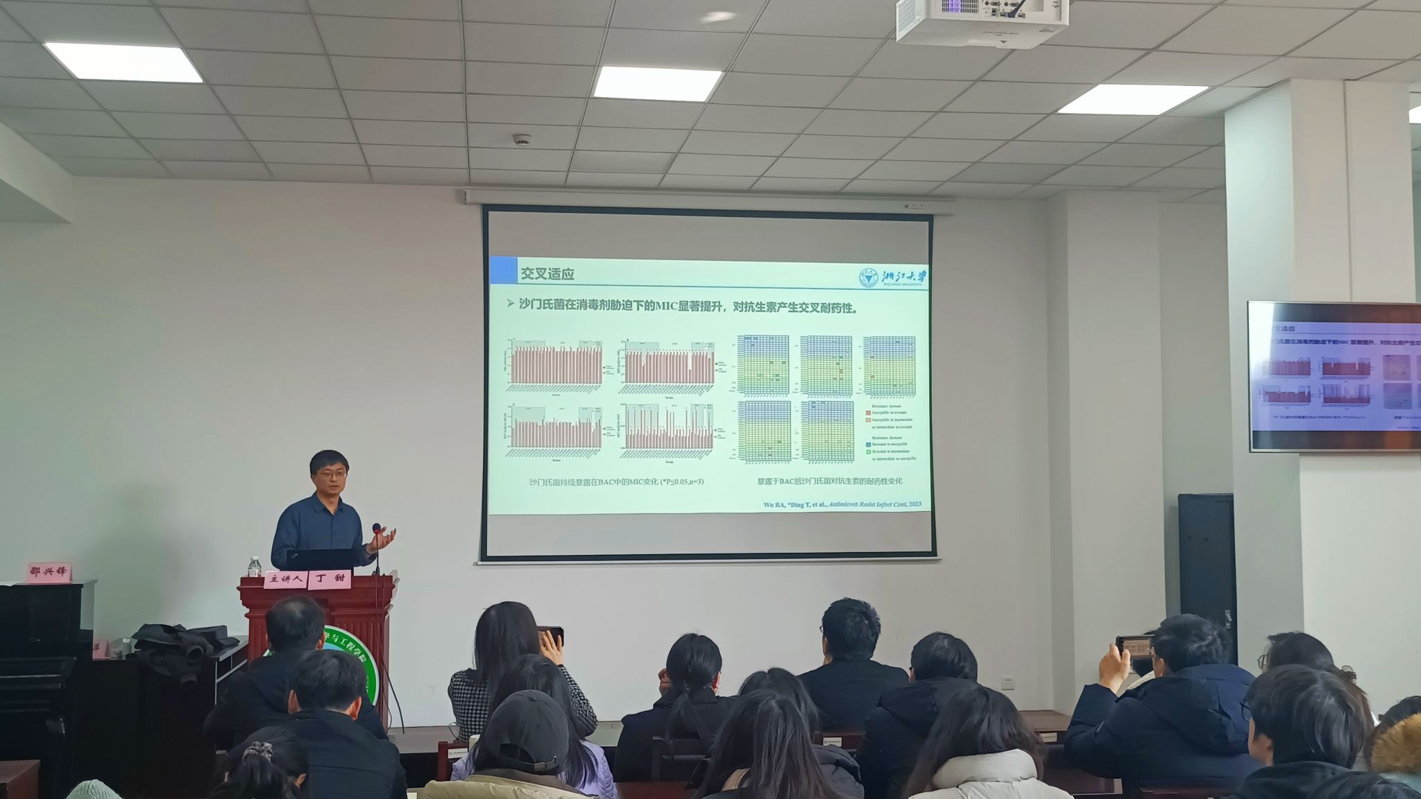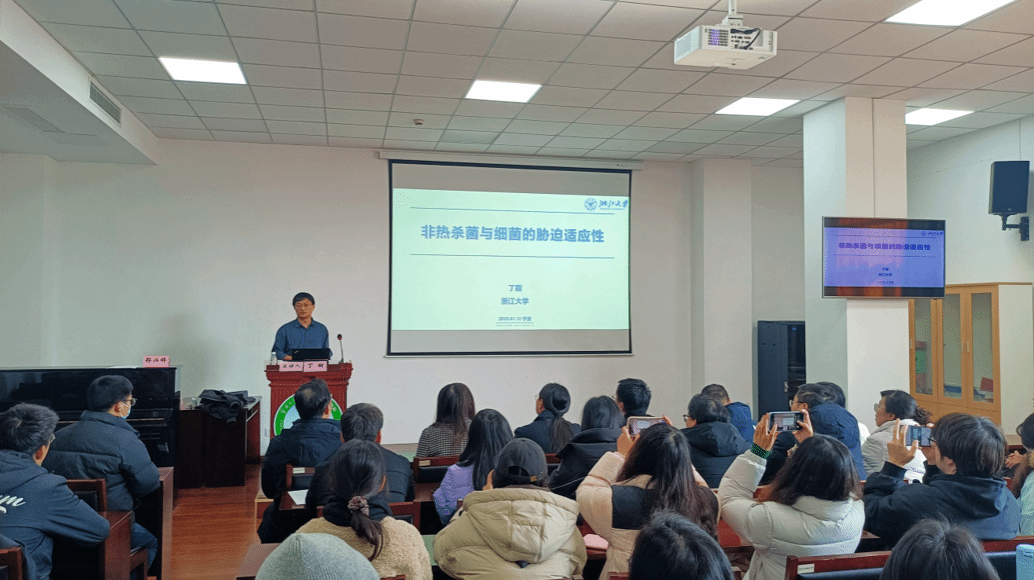 指导并作了题为《非热杀菌与细菌的胁迫适应性》的学术讲座。a片执行院长邵兴锋教授主持讲座,a片教师和研究生共80余人参加了此次讲座。