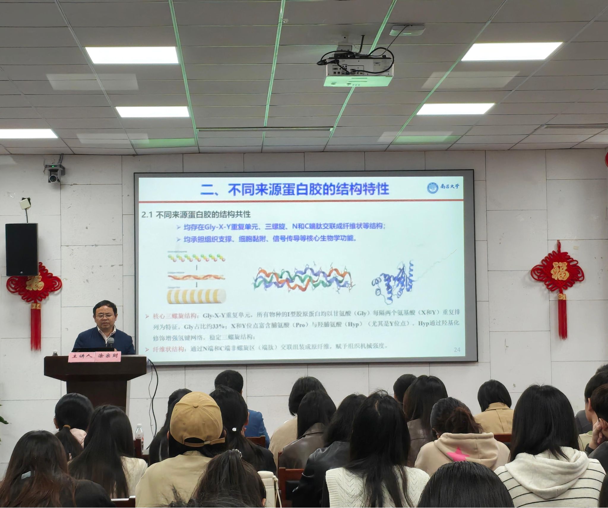 讲座现场气氛热烈,与会师生围绕蛋白胶凝胶的开发与利用、健康效应机制等议题与涂教授展开了深入交流与探讨。此次学术活动充分展现了我院在食品加工与营养健康领域的科研活力,为促进蛋白胶技术的创新应用与跨学科合作提供了重要平台。