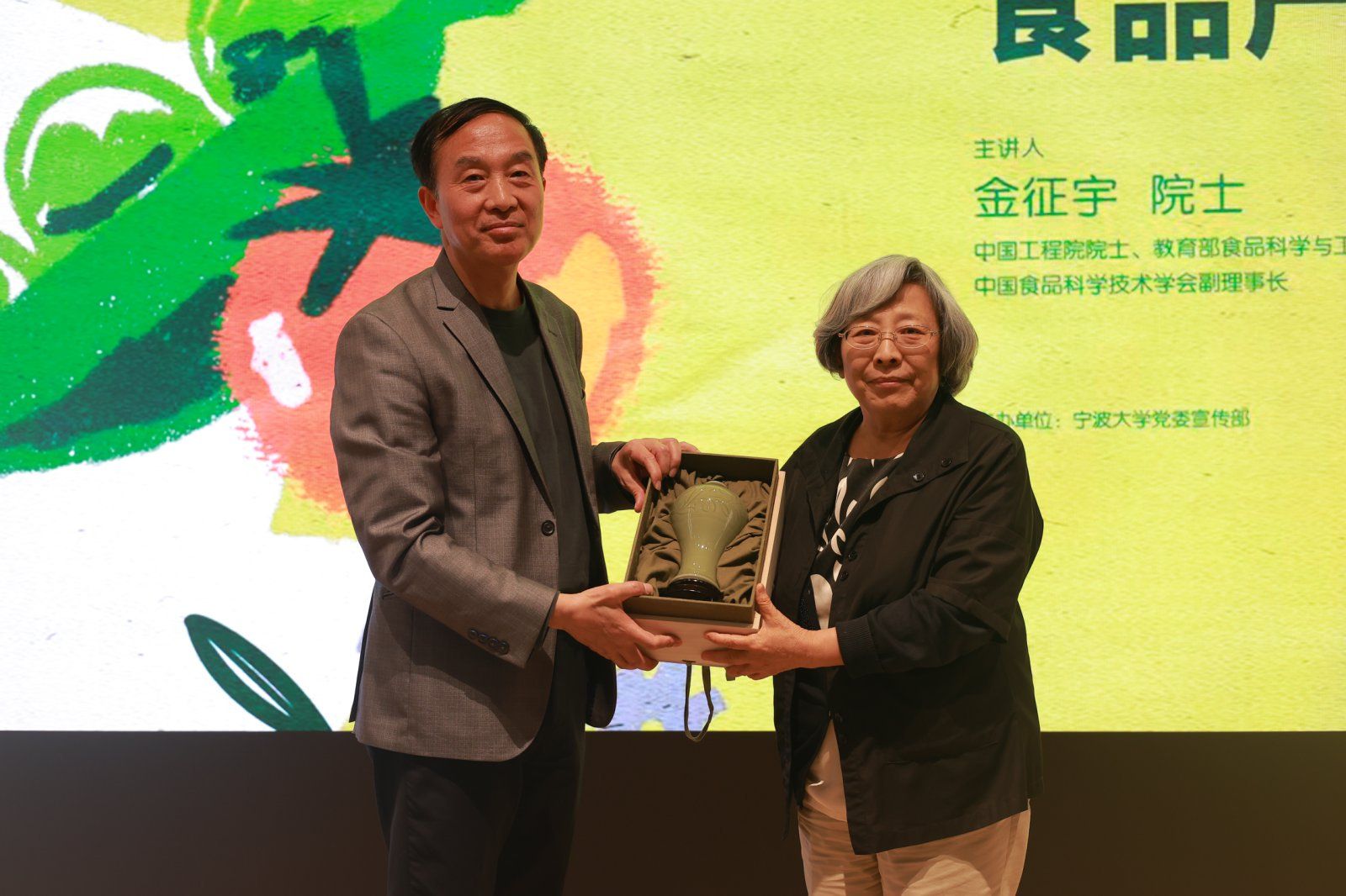 讲座尾声,赵玉芬院士代表学校向金征宇院士赠送“古越青瓷”纪念品。这承载着浙东文化底蕴的礼物,不仅象征着此次学术交流历经淬炼的厚重价值,更寓意着金院士带来的启迪如青瓷般温润绵长,值得师生们永远珍藏,也为此次意义非凡的学术交流活动画上圆满句号。