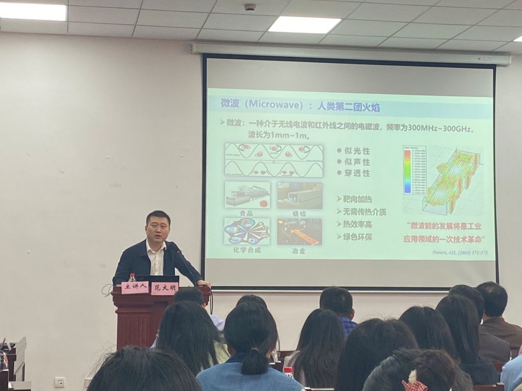 报告结束后,师生就微波在水产品、乳制品加工中的应用进行了交流和讨论。